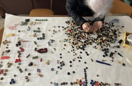 'Per si de cas' és un procés de conversa i reactivació d'aquests objectes per ressignificar-ne el paper i qüestionar la invisibilitat que se'ls ha imposat per estar vinculats a la llar i la feminitat. L'artista i la seva àvia canvien els botons de lloc, els reorganitzen i es detenen en les memòries: tornen a la materialitat i recorden el poder dels petits elements quotidians per interpel·lar-nos i connectar-nos amb un passat que